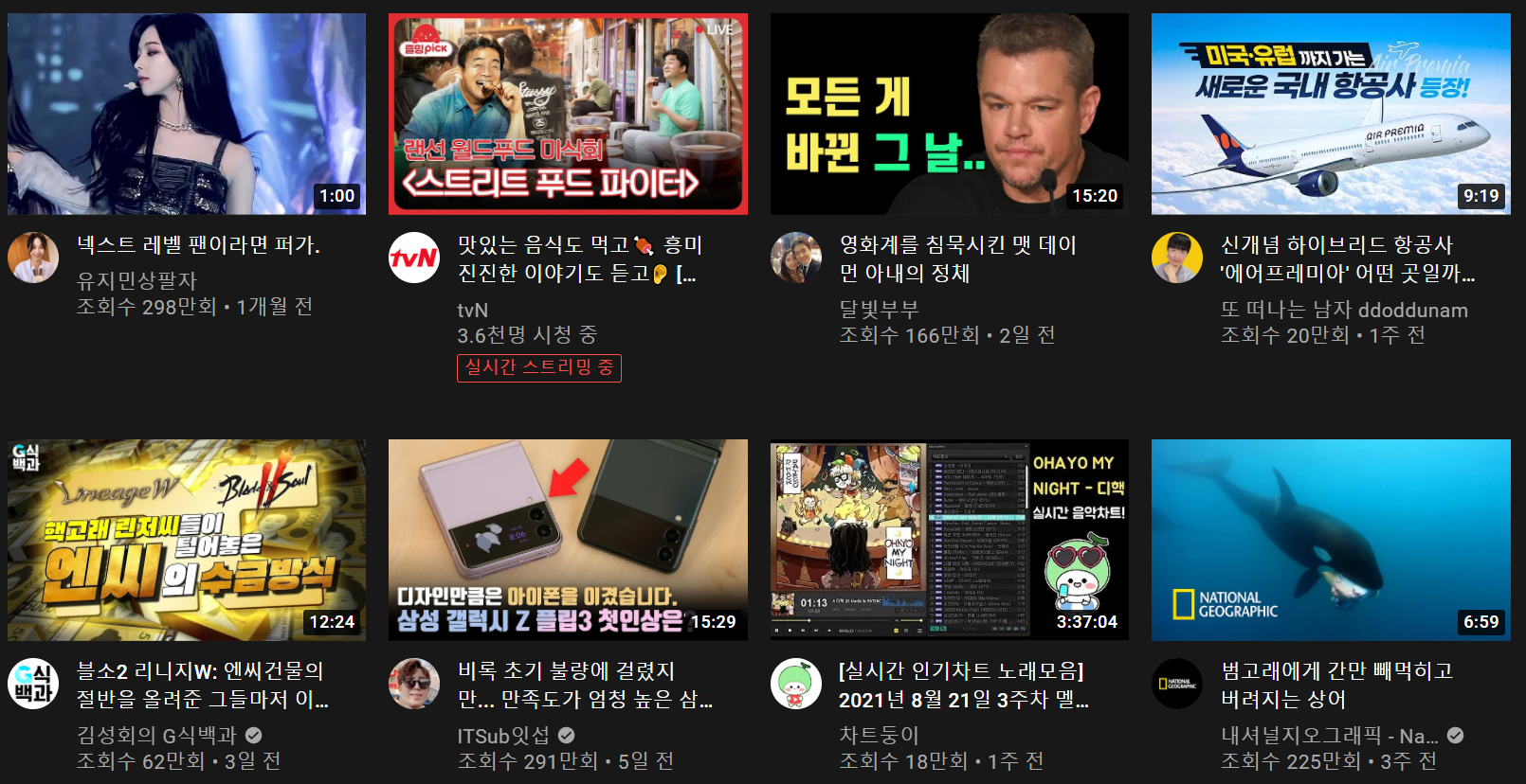 유튜브 화면에는 아래와 같이 많은 썸네일이 즐비해 있습니다.