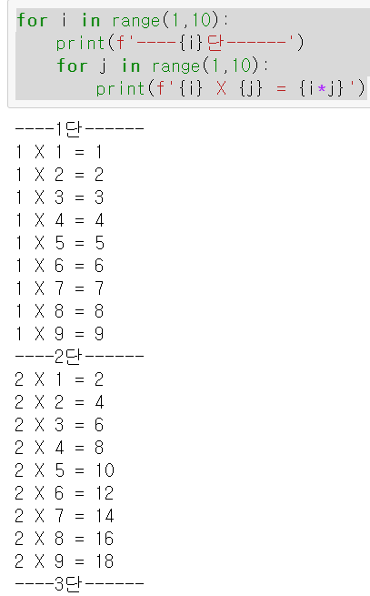 print(f'----{i}단------')