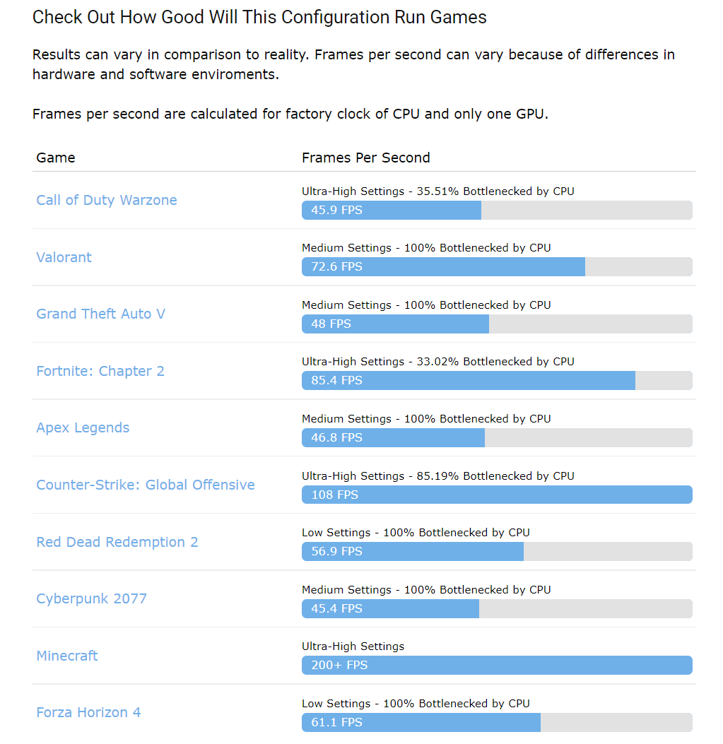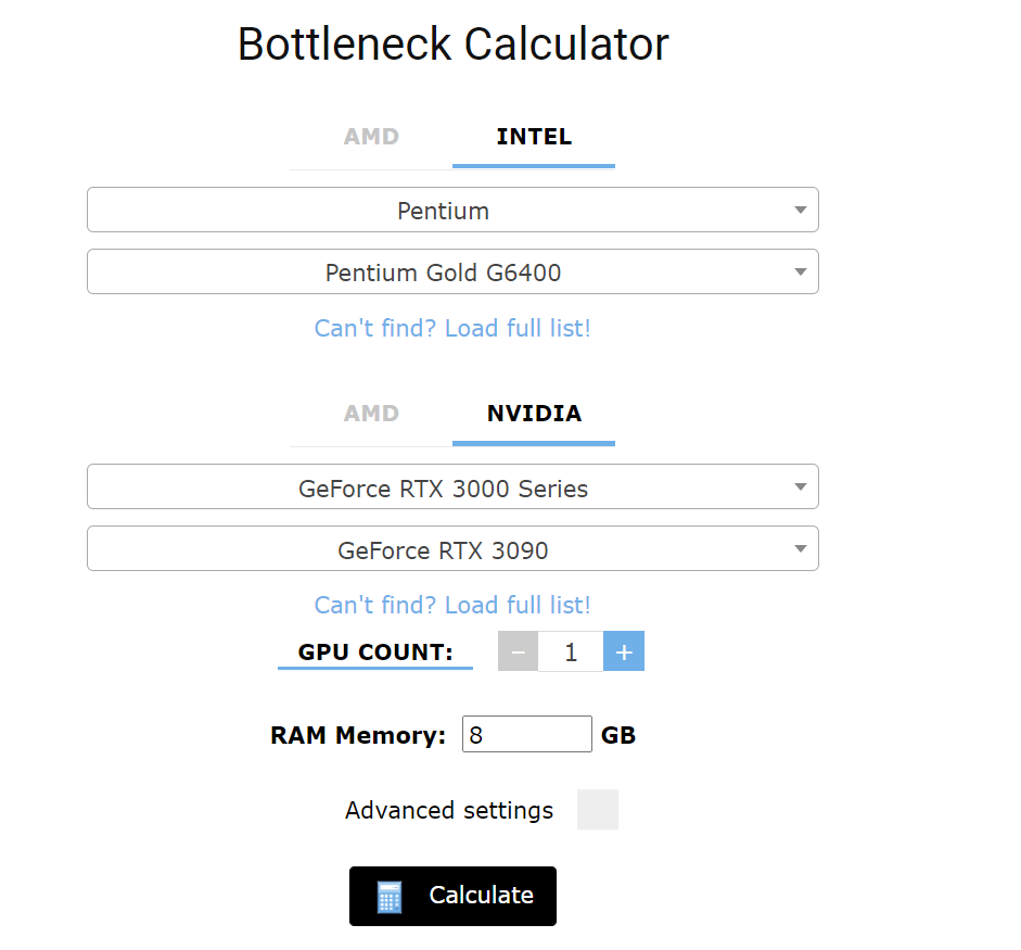 We bring you a unique calculator for bottleneck and chokepoint problems in your computers. We will help you to choose most appropriate processor and graphic card for your PC. Our calculator offers you up to 20 best solutions for reducing or removing bottle