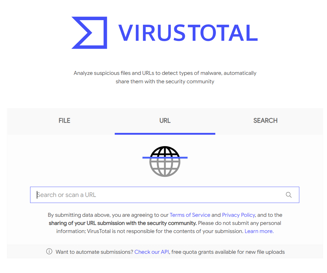 위에 알려드린 바이러스토탈 홈페이지에 접속하시면 되구요.
