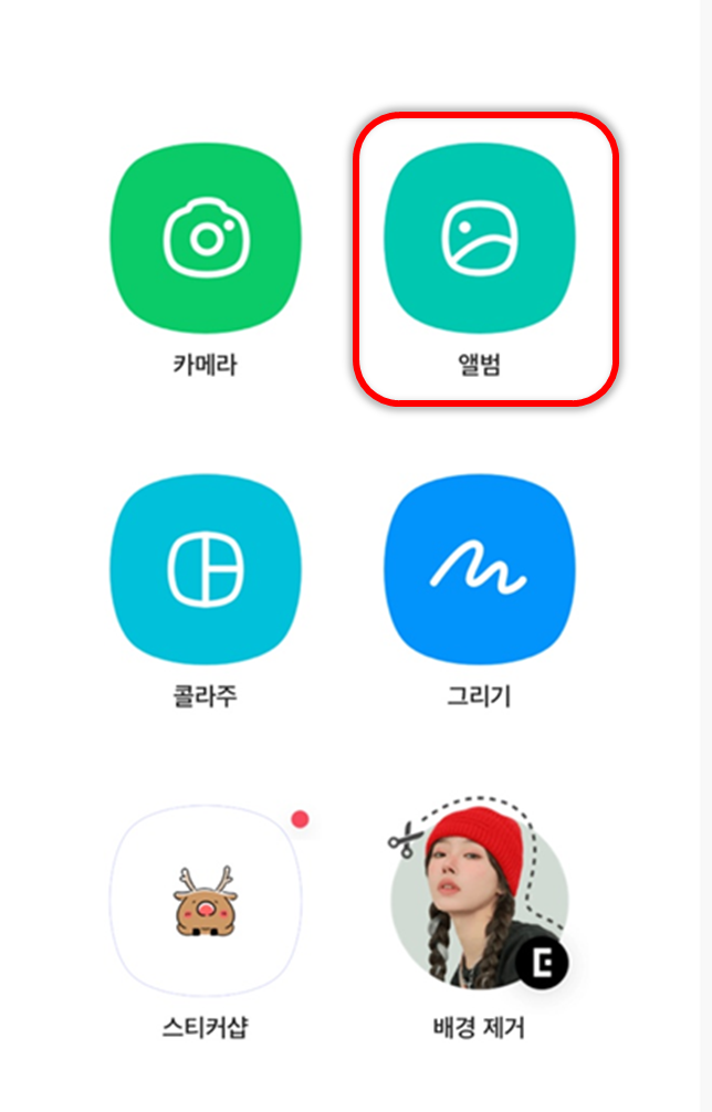 저는 이미 있는 사진에 스티커만 붙일 것이므로 앨범 메뉴를 클릭합니다.