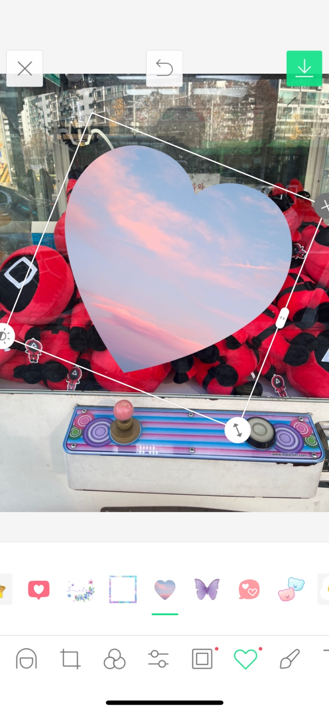 이후 원하는 스티커를 선택하셔서 사진 내의 원하는 위치와 사이즈로 조절하시면 됩니다.