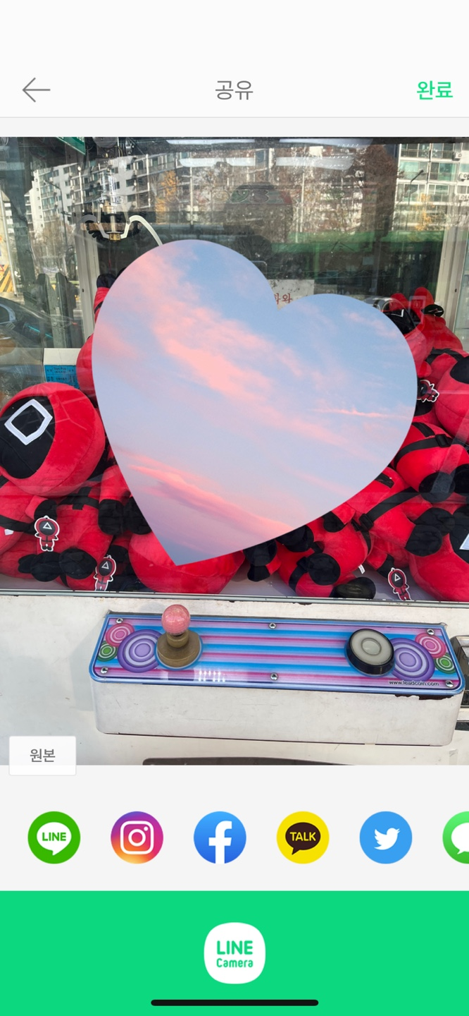 저장 후에는 간편하게 외부로 사진을 공유할 수도 있습니다.