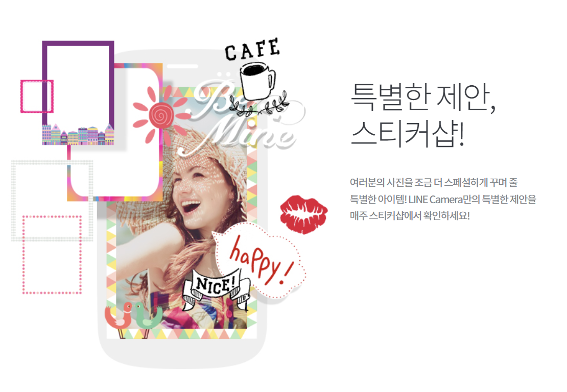다양한 스티커샵을 통해서 사진을 스페셜하게 꾸밀 수 있습니다.