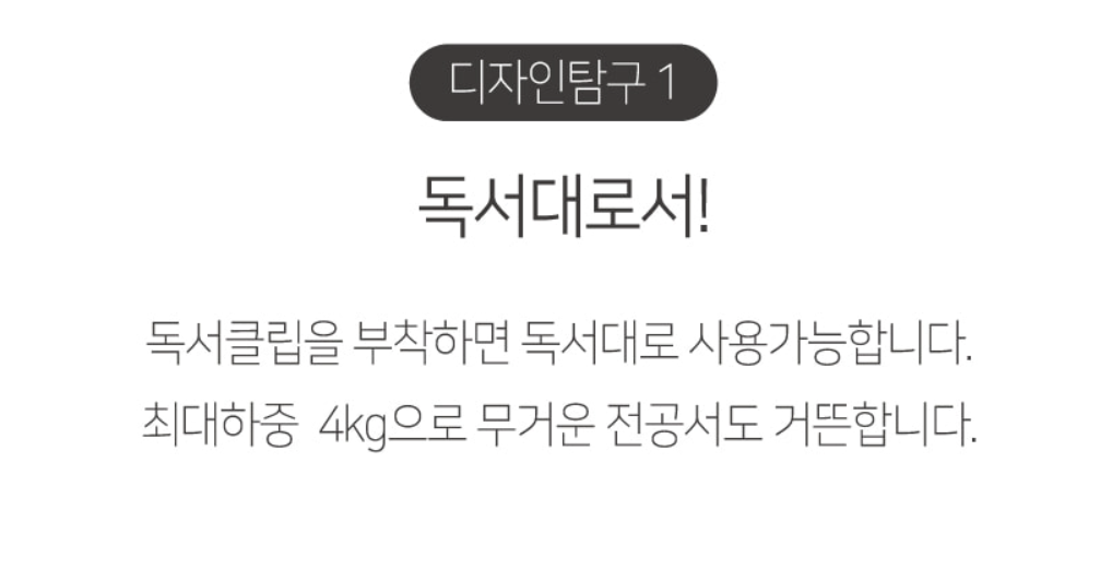 - 장점 : 이쁜 디자인, 튼튼한 구성, 다용도 독서대도 가능, 자유로운 각도 조절