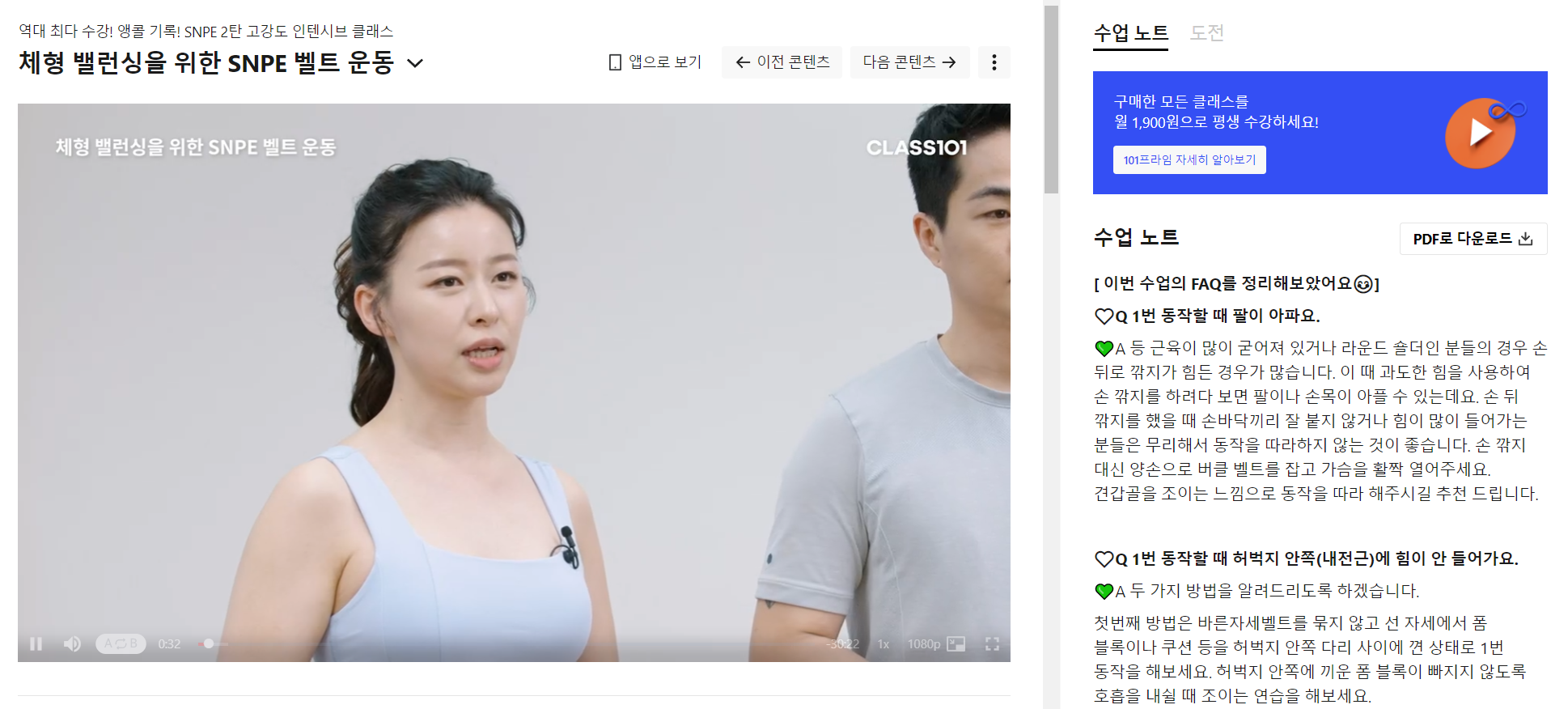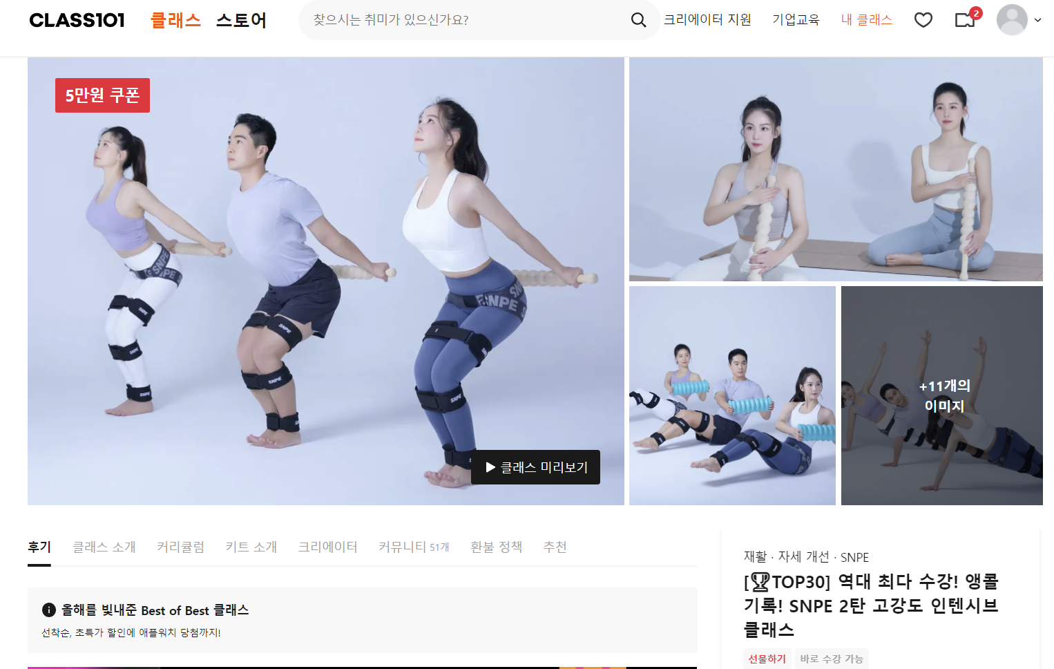 여러 플랫폼을 찾다가 클래스 101에서 SNPE 과정을 듣고 있습니다.