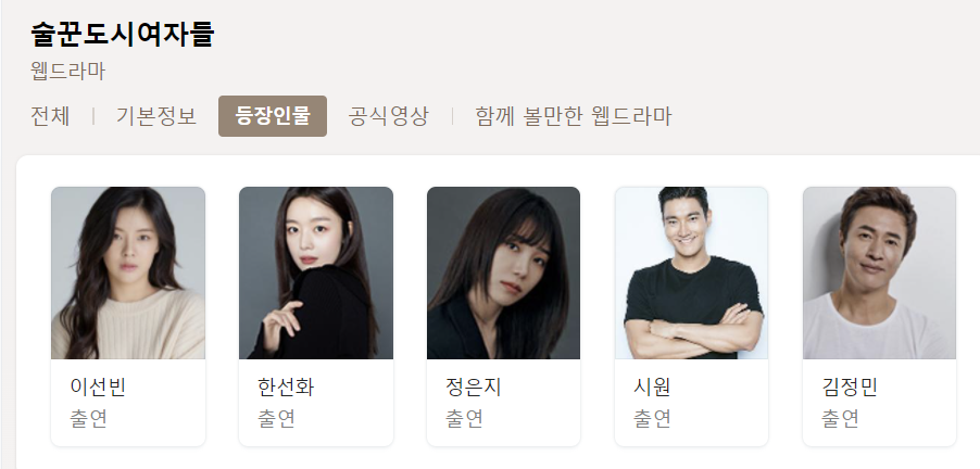 등장인물은 이선빈, 한선화, 정은지 그리고 최시원, 김정민이 나옵니다.