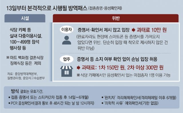 다중이용시설을 사용할 때 방역패스를 확인하지 않고 식당, 카페 등에 입장한 이용자는 10만원의 과태료 물어야 합니다.