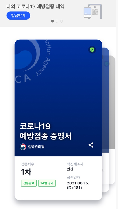 2차 접종의 경우 아래와 같이 접종완료 후 14일이 경과했다는 확인이 보여야지