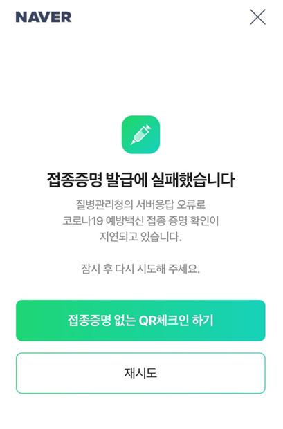 위의 에러 메시지처럼 실제 접종 정보를 불러오지 못했습니다.