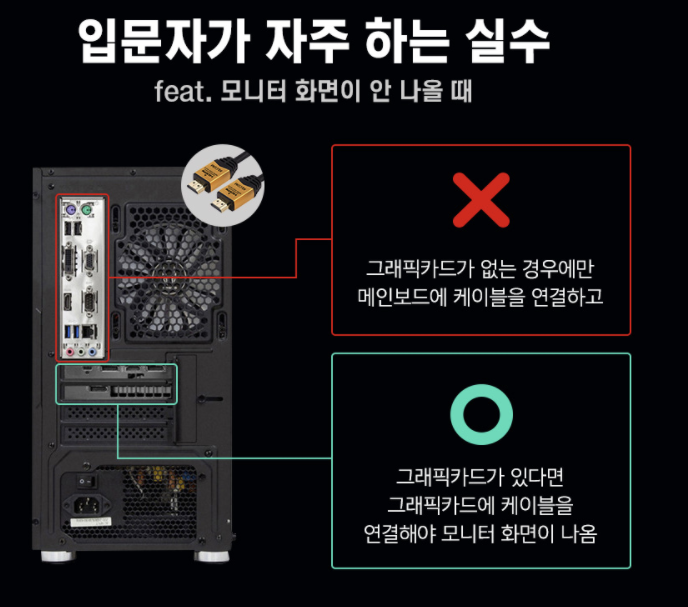 메인보드에 있는 내장 그래픽 포트에 연결하는 실수를 종종 하게 됩니다.