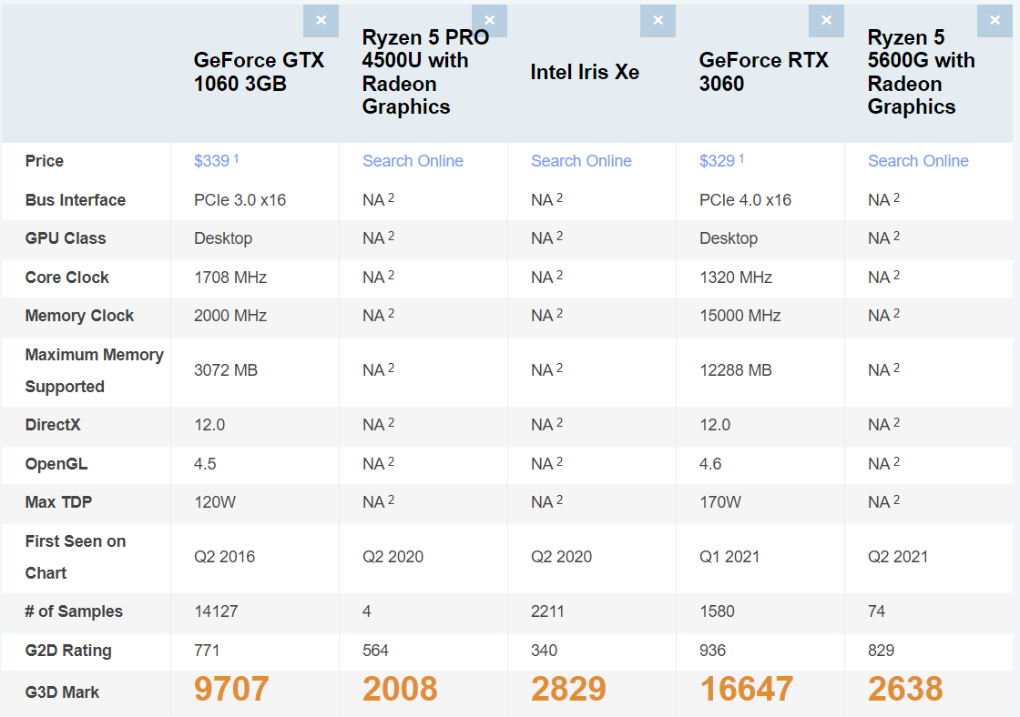 그리고 데스크톱에서 많이 사용하는 AMD의 5600G의 그래픽 성능도 2600점으로