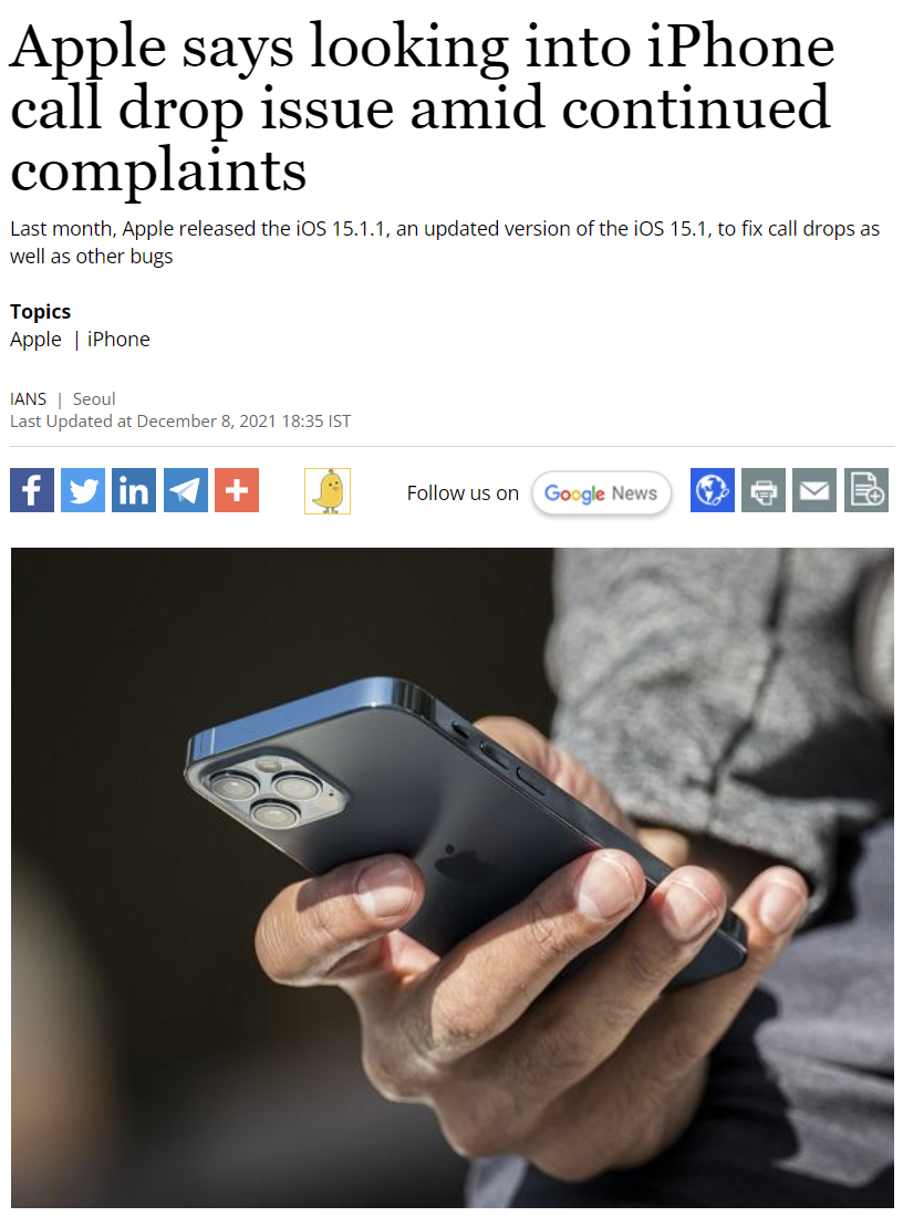 특히 지난달 18일에 배포한 아이폰 15.1.1업데이트 이후 Call Drop이 자주 발생했다고 하는데요.
