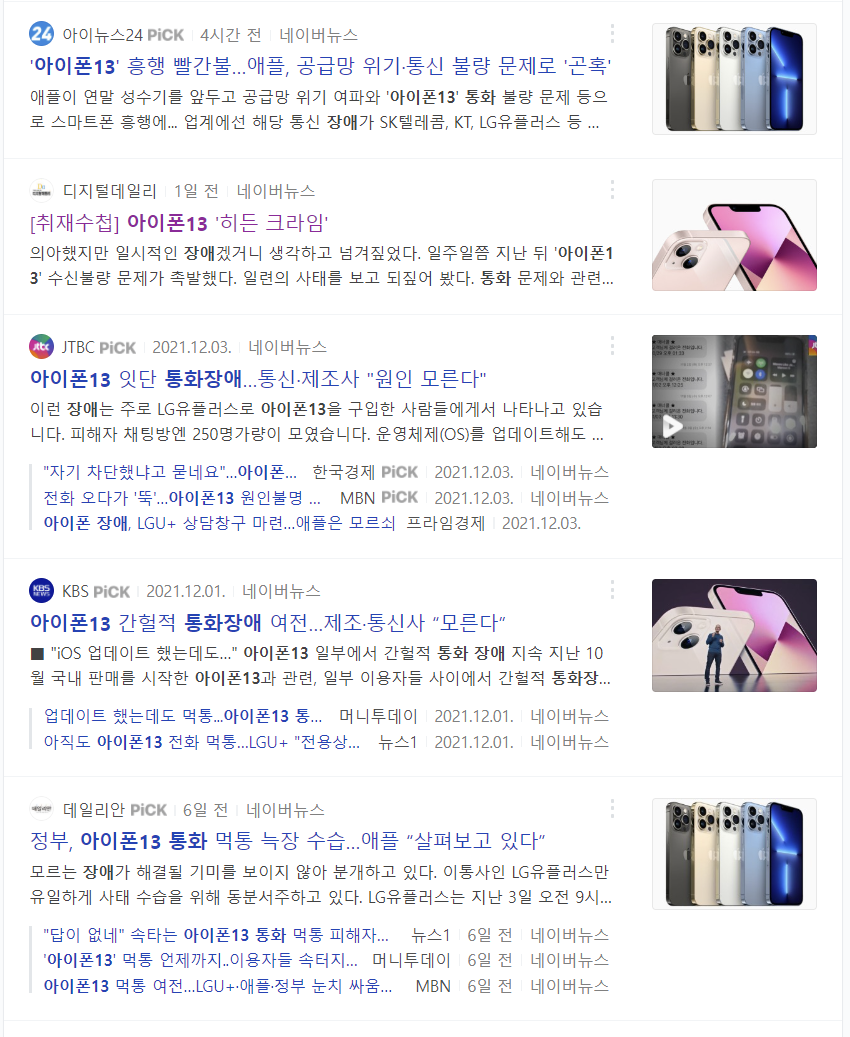 아이폰 13을 사용하는 이용자들의 카페에서 통신장애가 나온다는 글이 지속적으로 올라왔습니다.