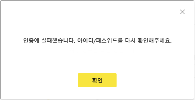 정확한 패스워드임에도 아래처럼 인증에 실패했습니다. 아이디/패스워드를 다시 확인해주세요.