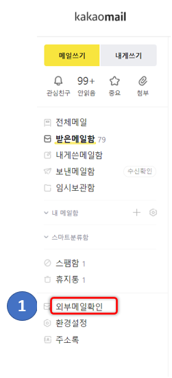 먼저 외부메일 확인 메뉴를 들어갑니다.