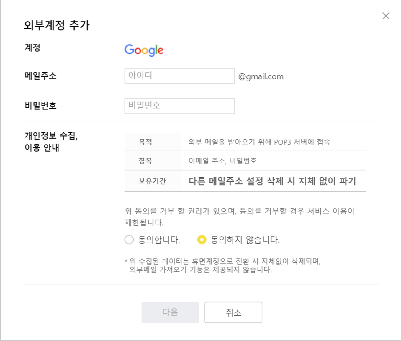 카카오에서도 pop3방식으로 외부메일을 불러올 수 있는데요.