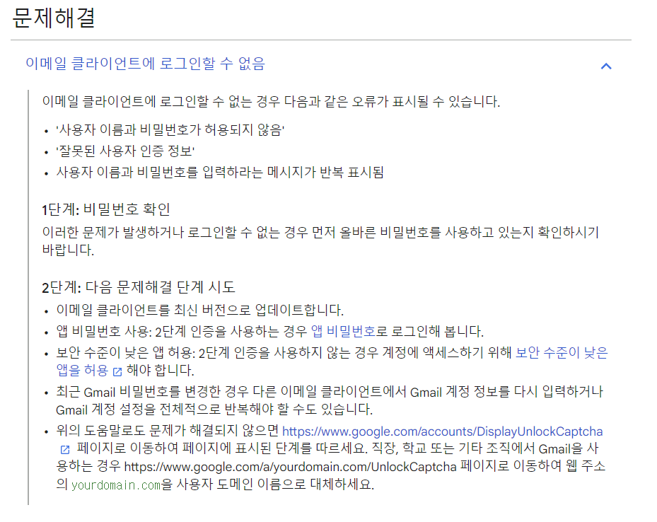 이는 구글의 2차 인증 또는 낮은 보안앱 차단 설정 때문 입니다.