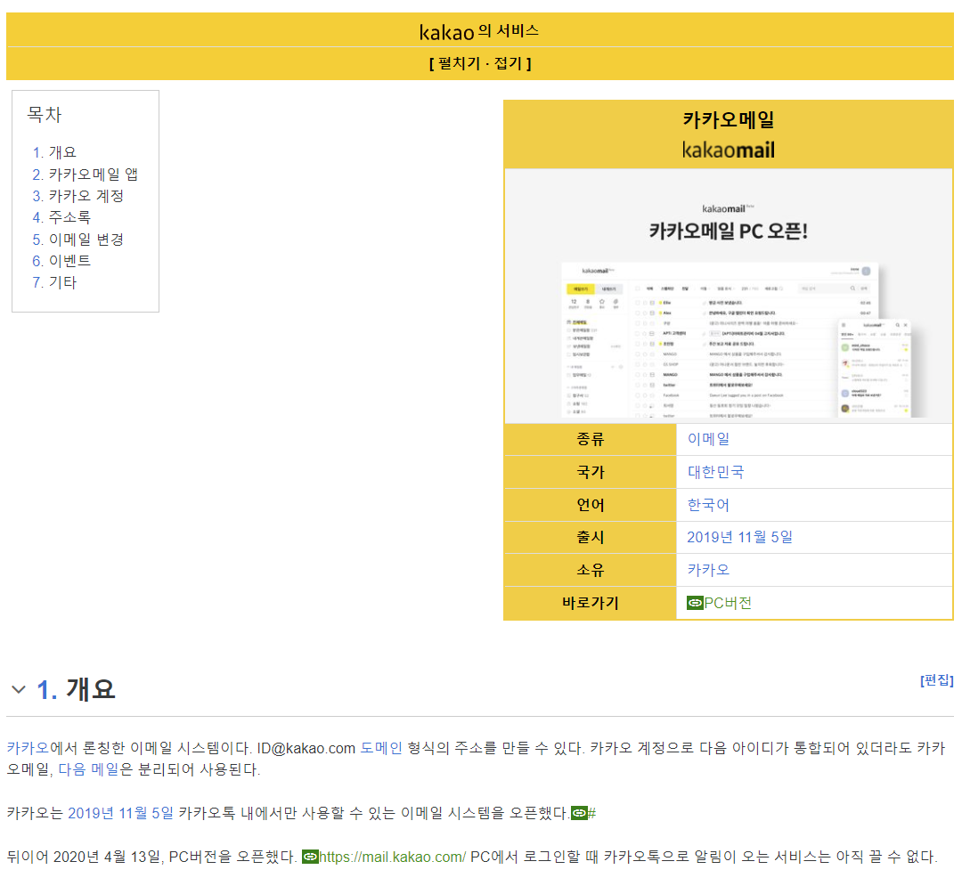 카카오에서 2019년 11월 5일 출시한 메일 서비스 입니다.