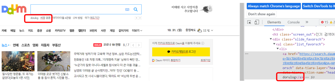 이렇게 실시간 검색에서 dorulog도 넣어보구요.