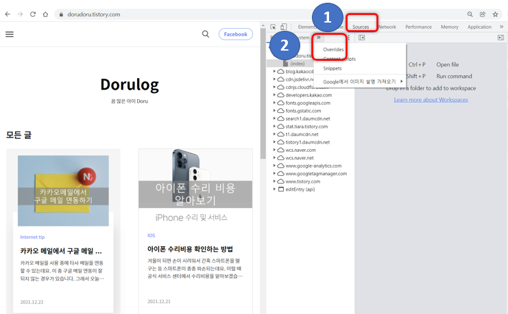 하지만 이 페이지는 overrides 파일이 저장된 제 컴퓨터에서만 변경되서 보인다는 점을 참고하시기 바랍니다.