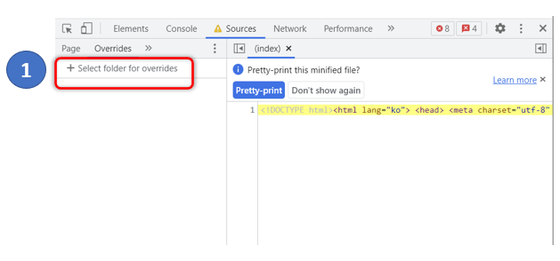 개발자 모드에서 Source -> Overrides에 들어간 후
