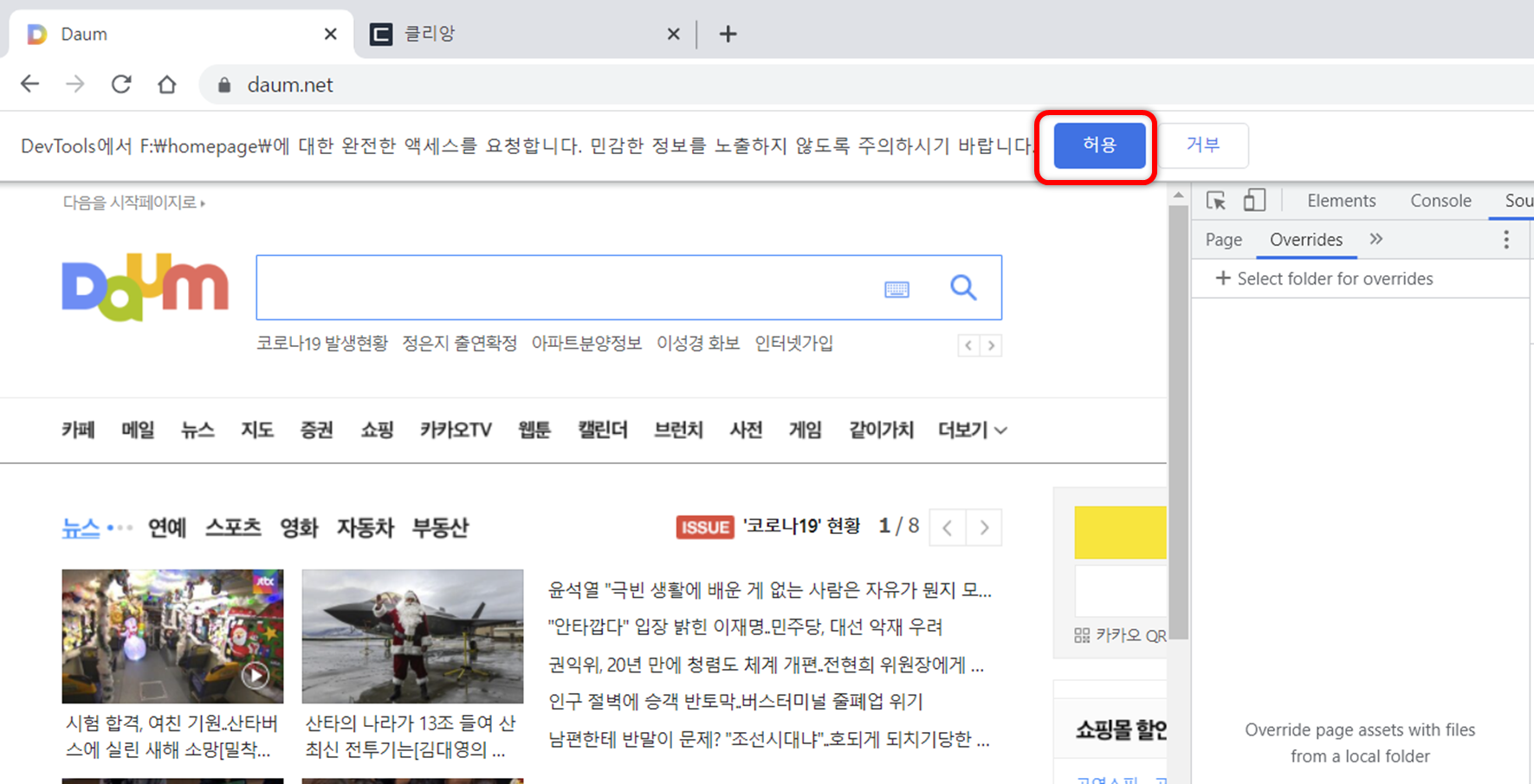 크롬 개발자 도구로 홈페이지 수정하기