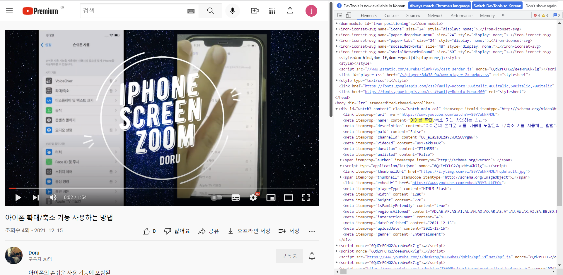 <meta itemprop="name" content="아이폰 확대/축소 기능 사용하는 방법"> 이렇게 제목이 있구요.