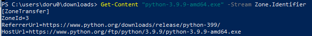 Get-Content "python-3.9.9-amd64.exe" -Stream Zone.Identifier