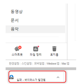 아래와 같이 실패 - 바이러스가 발견됨이라고 메시지가 뜨면서 파일 다운로드가 되지 않습니다.