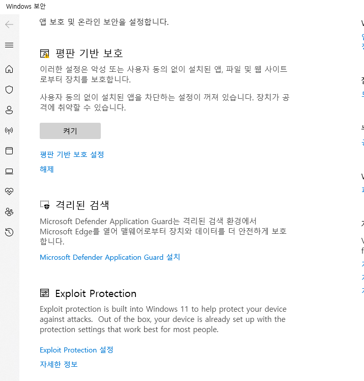 해당 메뉴에서 평판 기반 보호
