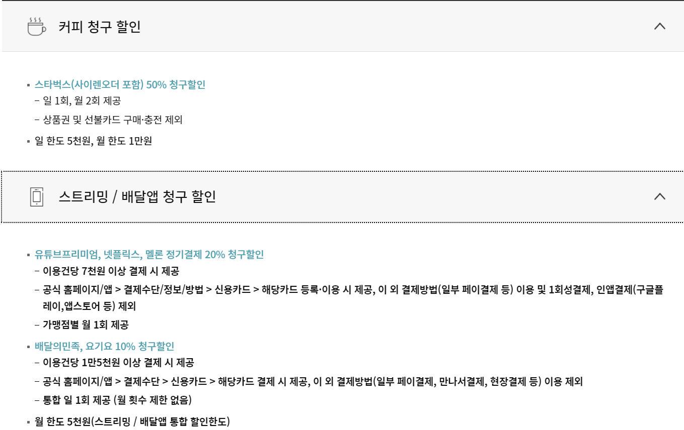 | 구분 | 월사용액 | 카드적립(5%) | 발급이벤트 |