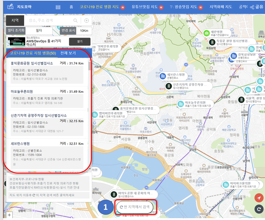 사용법도 간단한데요. 위치 권한을 허용하면 간단하게 집주변의 코로나19 진료 지정병원을 확인할 수 있구요.
