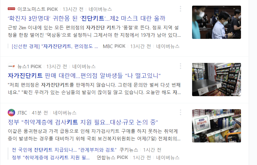 정부는 이에 따라 자가진단키트에 대해 전국민 지급 하는 방안 등을 검토하고 있다고 합니다.