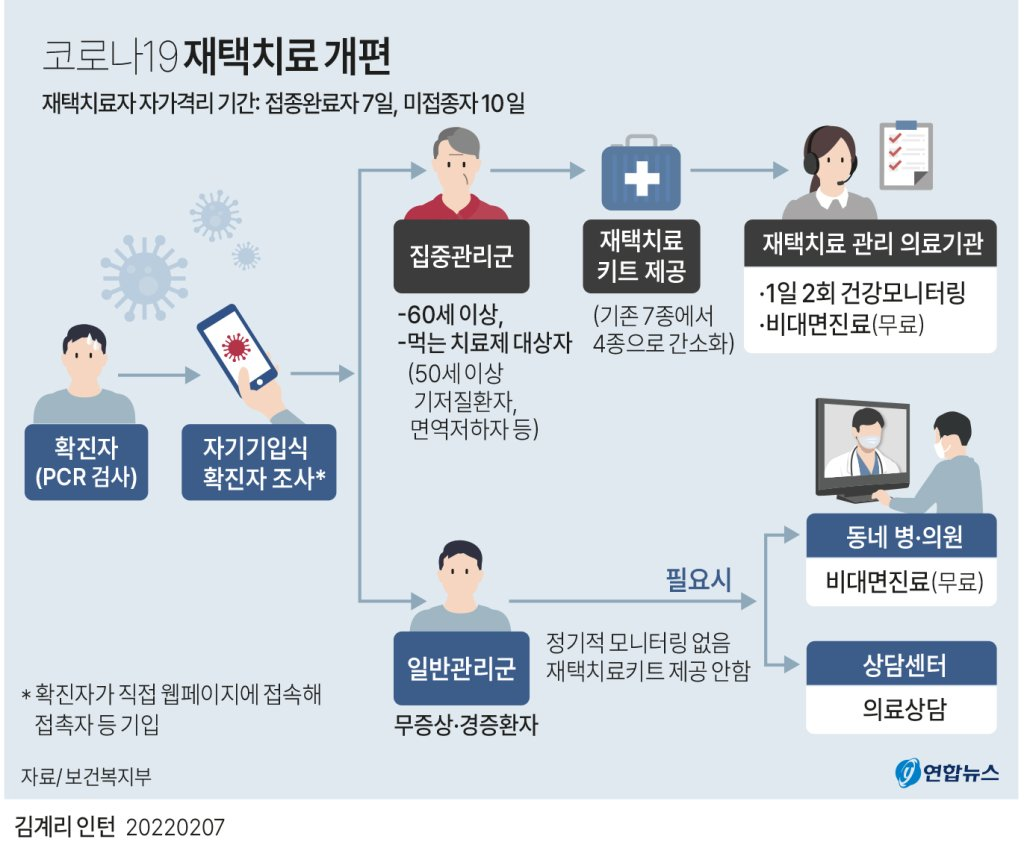 2월 7일에 발표된 코로나19 재택치료 개편 대책은 집중관리군에 집중한다는 것이 기본 골자인데요.