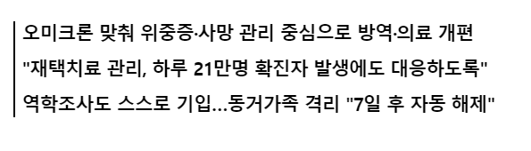 오미크론으로 인한 확진자 폭증에 맞춰 위중중/사망 관리 중심으로 방역/의료가 개편되었습니다.