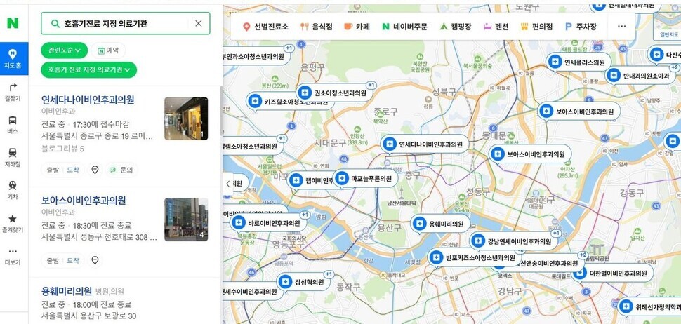 집 근처 비대면 진료기관은 10일부터 네이버 등을 통해서 호흡기진료 지정 의료기관을 검색하면 된다고 합니다.