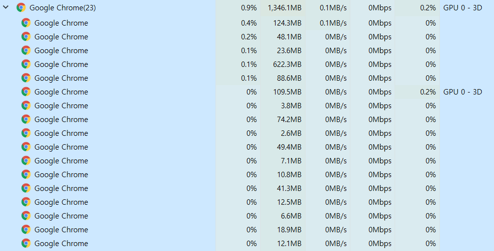 구글 크롬의 프로세스가 많은 이유는 '탭마다 독립된 프로세스' 때문입니다.