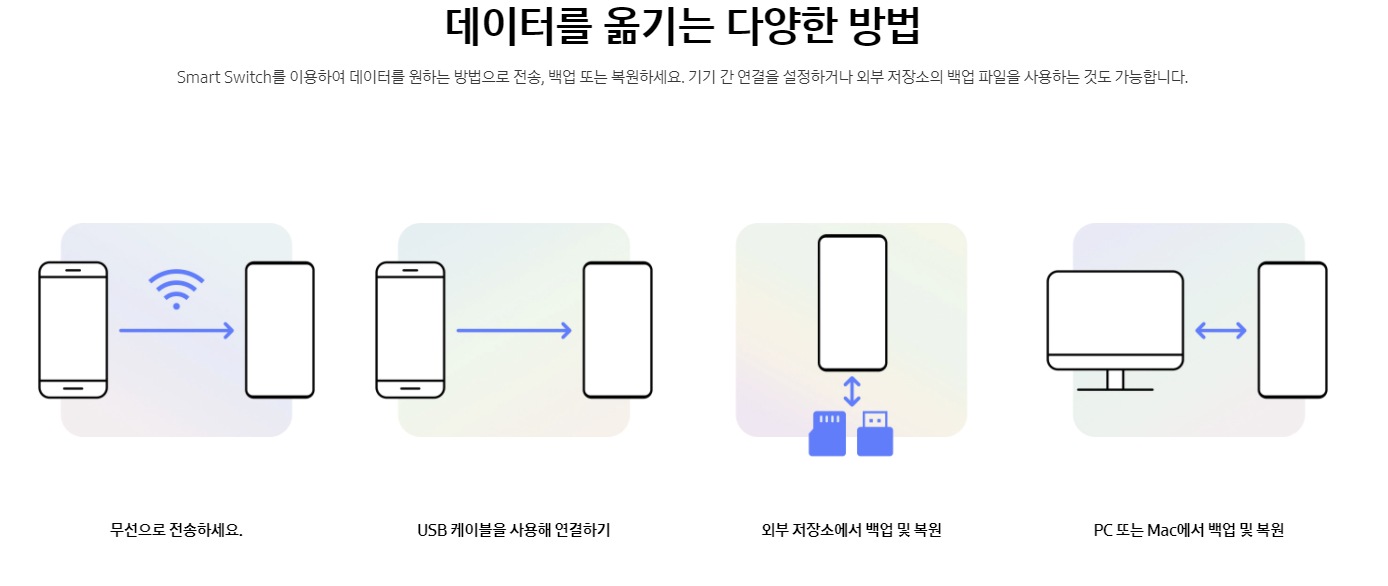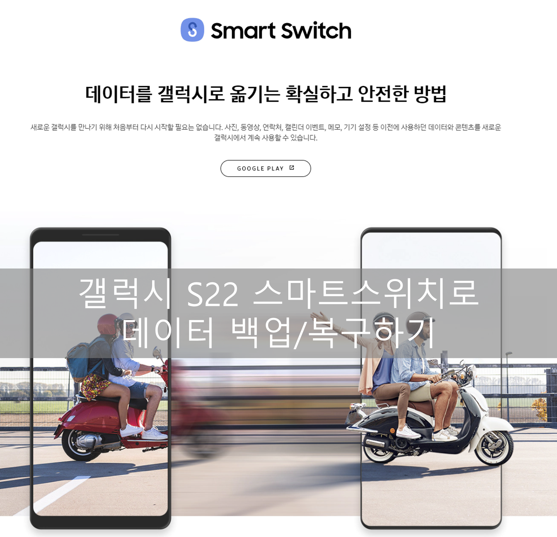 하지만 갤럭시 S22에는 스마트 스위치로 기존폰에서 간편하게 데이터를 백업/복구할 수 있습니다.