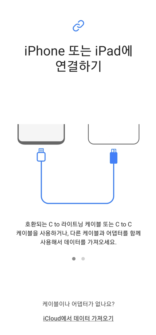 이후 다음 화면에서 C to 라이트닝 케이블로 연결해주시면 되는데요.