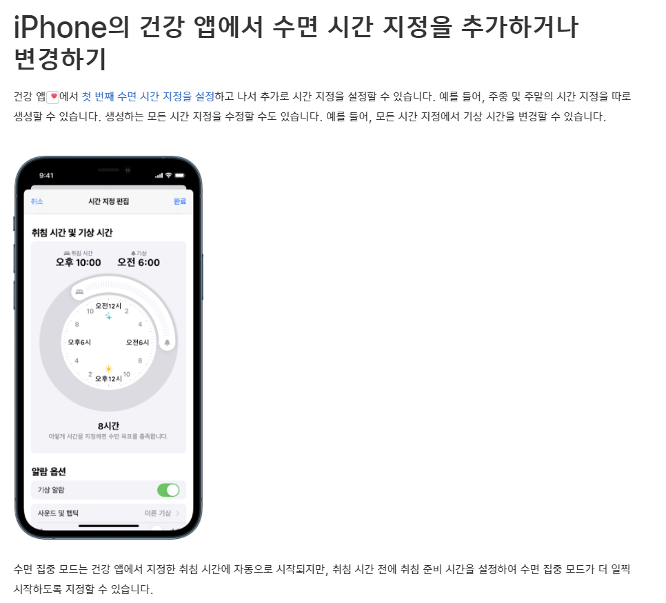 갤럭시 뿐만 아니라 아이폰에서도 유사한 취침 기능을 제공합니다.