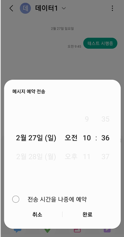 안드로이드 스마트폰이라면 모두 동일한 인터페이스에서 예약 메시지를 발송할 수 있습니다.