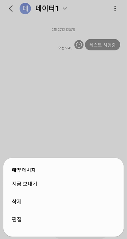 메시지 예약을 누르면 아래와 같이 일반 문자와 달리 예약 전송 시간이 표시되기 때문에