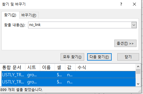 저는 예시로 삭제하고자 하는 no_link를 검색해보겠습니다.
