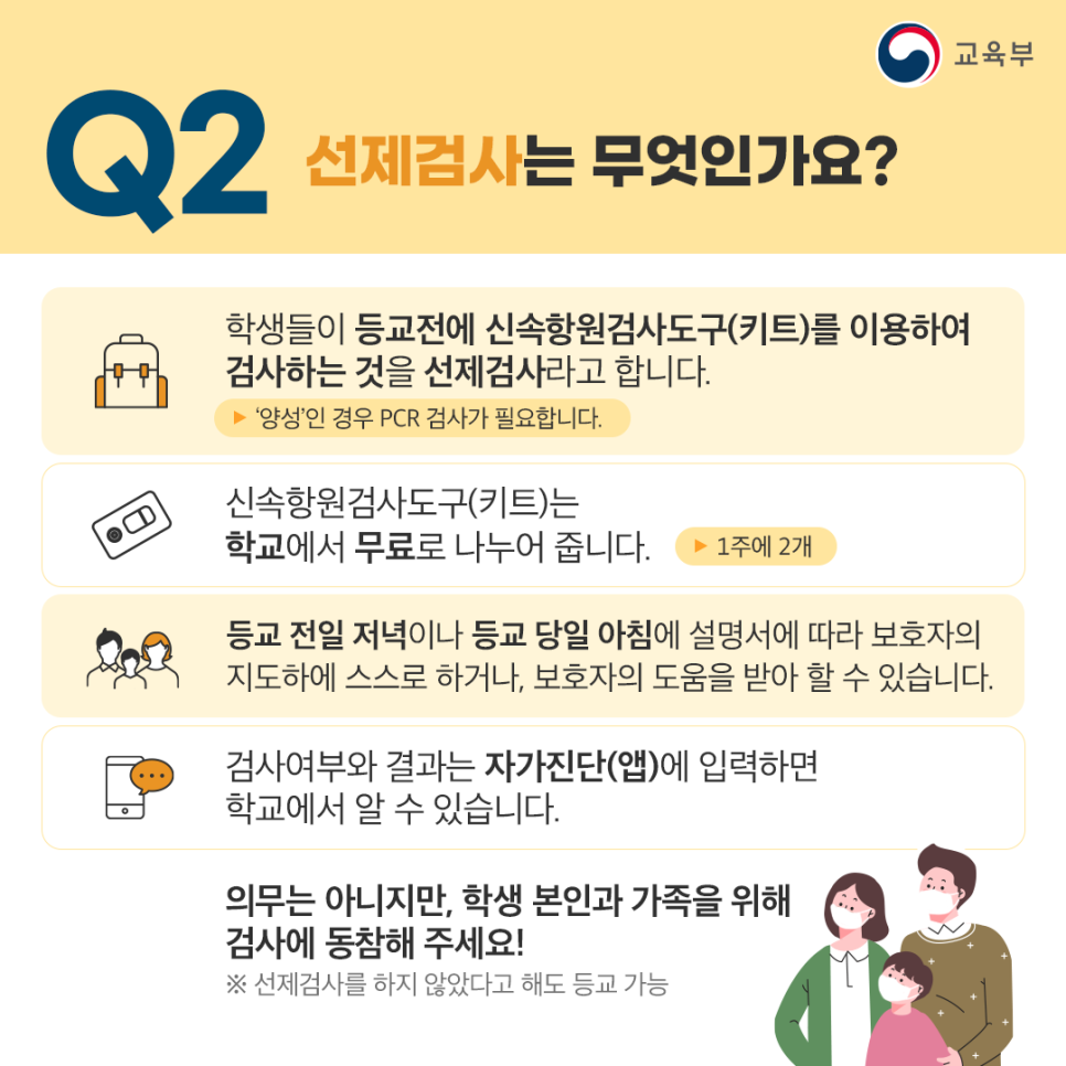 그리고 등교 전일 저녁이나 당일 아침에 보호자의 지도하에 시행하면 됩니다.
