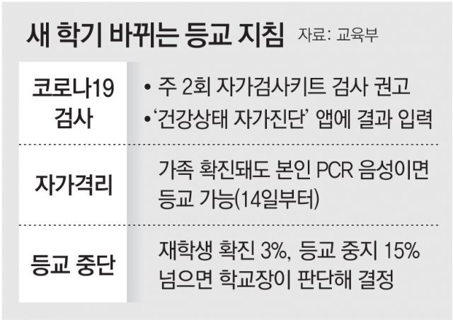 - 등교 중단은 재학생 확진 3%, 등교 중지 15%넘으면 학교장이 판단하여 결정