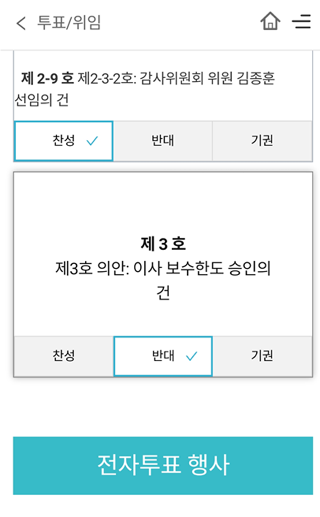 각 개별 안건에 대해서 찬성/반대를 표시하시면 되고요. 잘 읽어보시고 투표하시면 될 것 같습니다.
