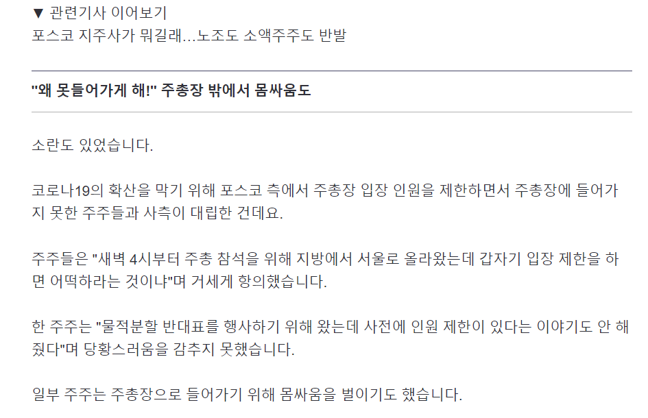 최근 물적분할에 따른 포스코 주총 때 입장 제한을 하는 등