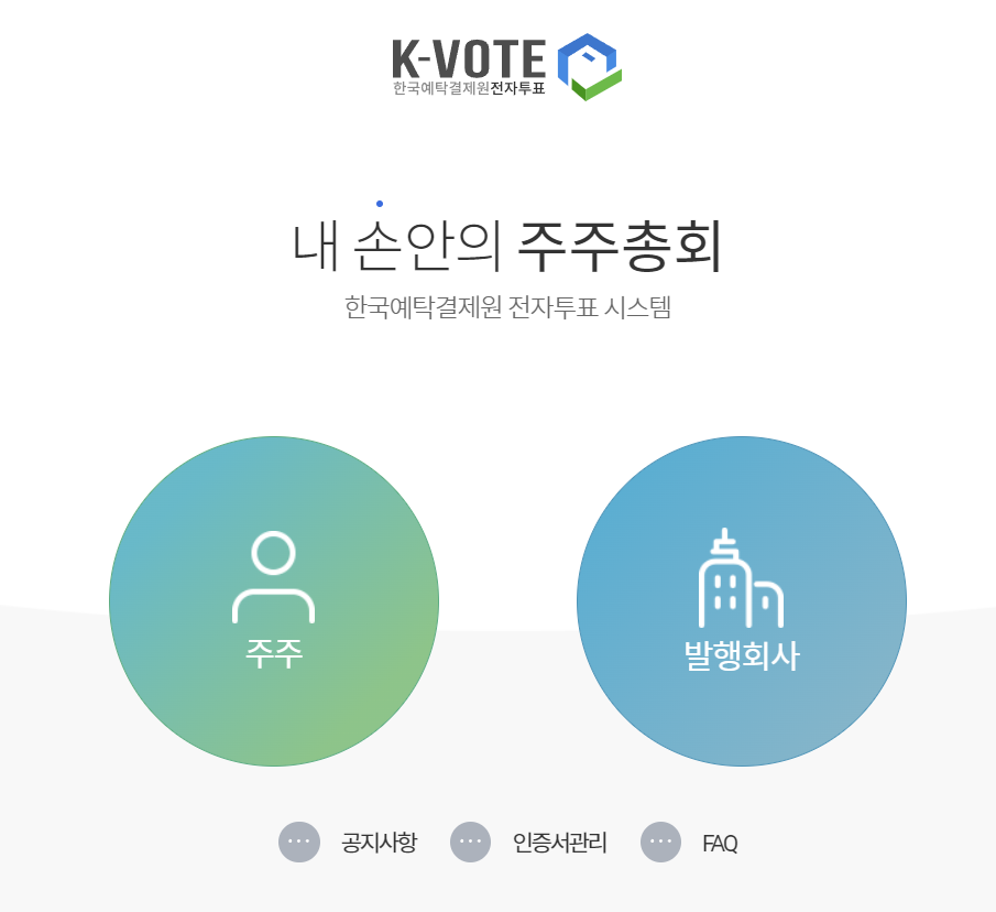 K-VOTE 사이트에 접속하여 주주총회의 안건에 전자 투표할 수 있습니다.