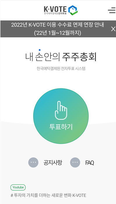 코로나19 등으로 대면 참석이 어려워져서 K-VOTE와 같은 비대면 주주총회가 시행되기 시작했습니다.